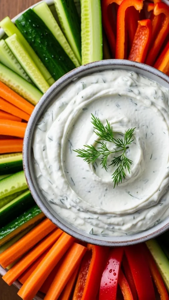 A good dip makes everything feel like a party. Mix plain yogurt with a spoon of mayo, a squeeze of lemon, salt, pepper, and dried herbs. Add chopped green onions or chives for that green pop. Serve with carrots, cucumber, and any crunchy veg you have.