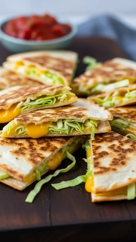This is a smart, low-cost snack that feels different. Sauté shredded cabbage with onions until soft. Season with salt, pepper, and a pinch of paprika. Spread the cabbage on tortillas, sprinkle with cheddar, then toast in a skillet until crisp. Cut into wedges and serve with a mustard-yogurt dip.