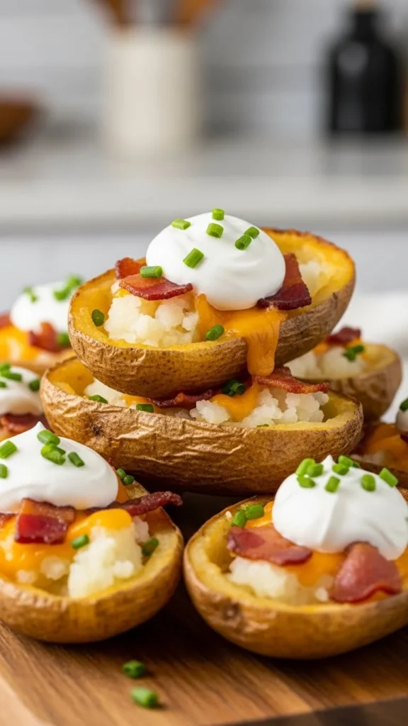 Budget tip: use medium potatoes instead of large. You get more skins per bag, which means more bites on the tray. Save the scooped potato for mashed potatoes tomorrow.