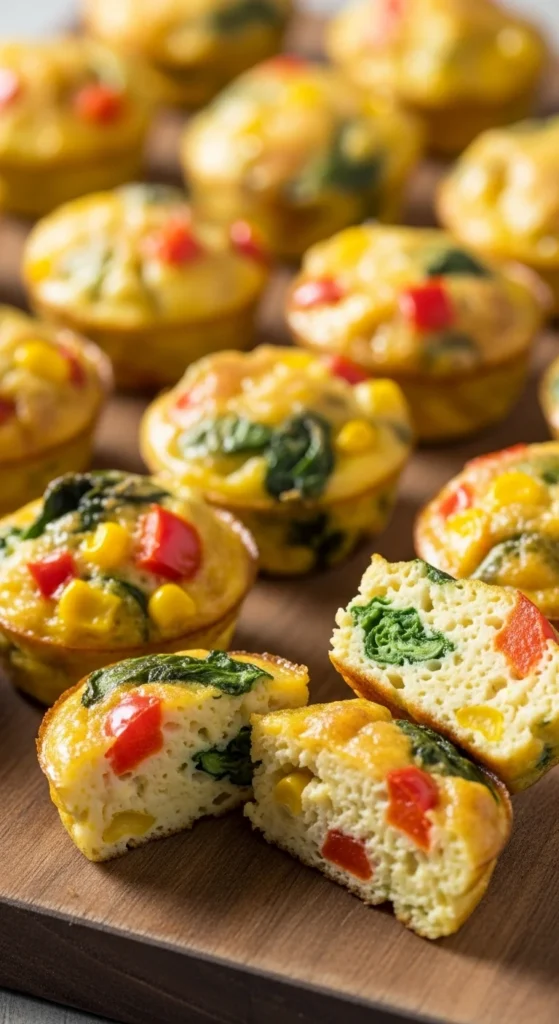 Bake frittata bites in a muffin tin using eggs, spinach, green onions, and small broccoli pieces. Add a sprinkle of cheese for richness.