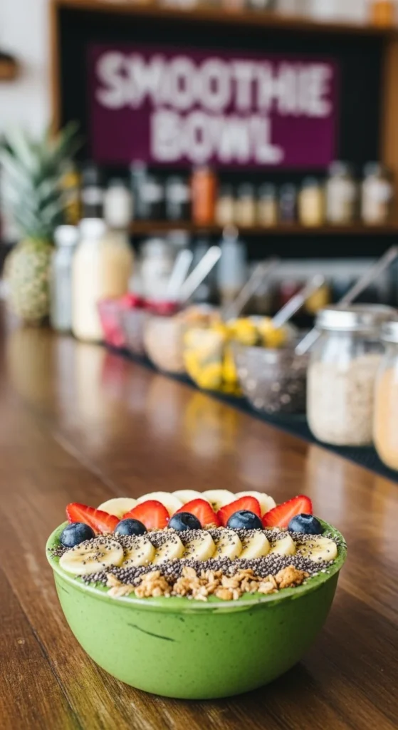 Budget tip: use spotty bananas that you freeze yourself. They make the bowl thick without pricey add-ins. If kiwi costs more, stick with grapes and apples.