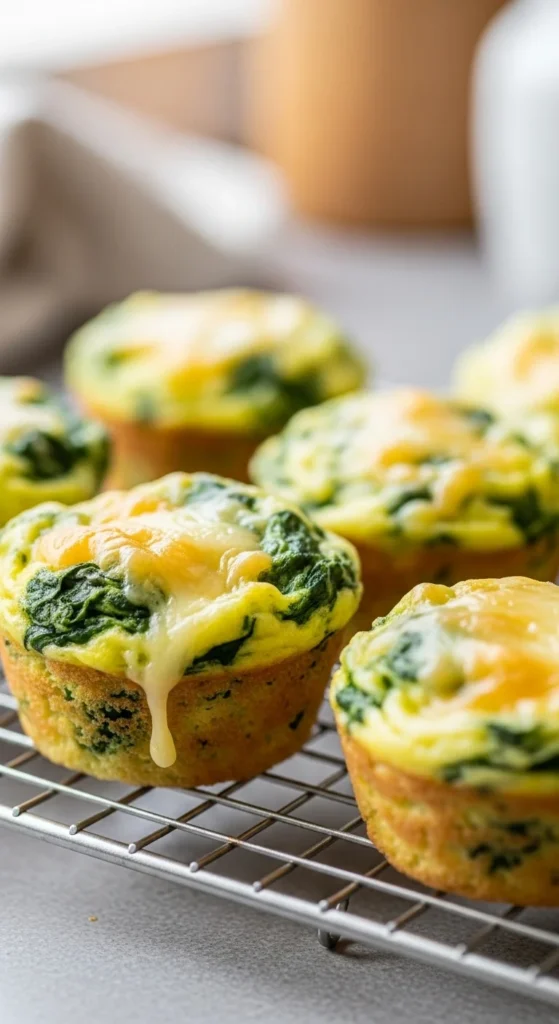 Whisk eggs with salt, pepper, chopped spinach, and shredded cheese. Pour into a greased muffin tin and bake until set. These are perfect for grab-and-go mornings or brunch trays.