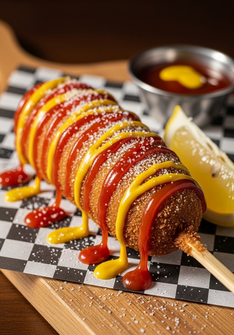 These Korean-style corn dogs are a fun hybrid: crispy exterior, soft hot dog center, and the option to add mozzarella for a gooey pull. The batter is slightly sweet and sticky, which helps the coating (panko or sugar & potato) cling. This recipe yields crunchy, golden dogs that smell like fair-season comfort and taste sweet-salty with each bite. Kids and grown-ups who love playful textures will devour them.