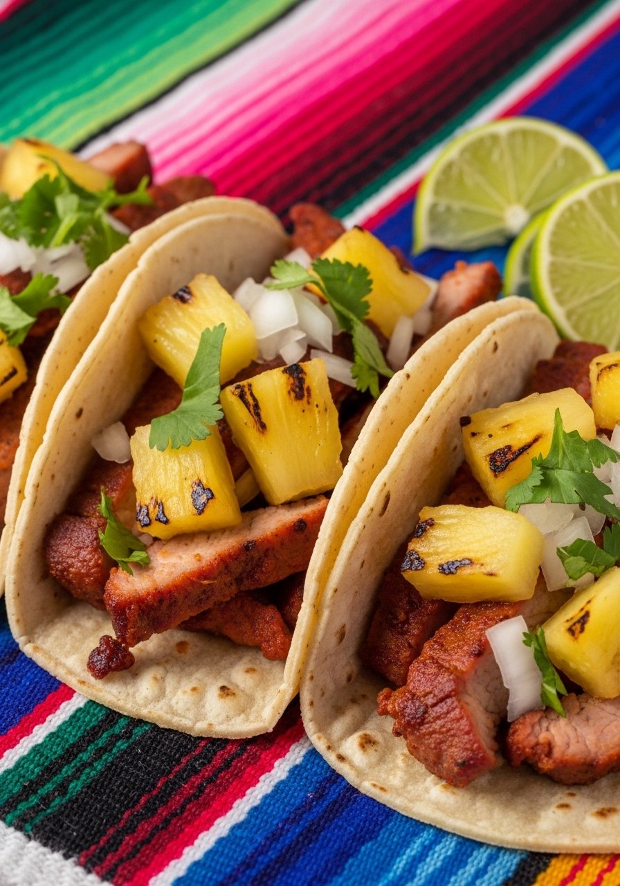 Al pastor tacos deliver bright, smoky, and sweet flavors—roasted pork with pineapple is a classic Mexico City street bite. This quicker home version uses a spice-marinated pork shoulder seared in a skillet, giving you the same tangy, slightly caramelized finish without a rotisserie. Expect tender meat, caramelized edges, and pops of sweet pineapple.