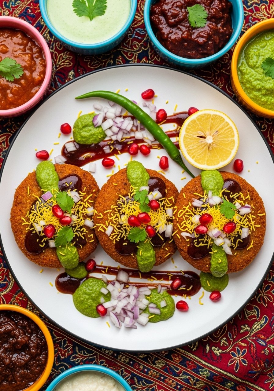 6. Mumbai Aloo Tikki Chaat (Street-Style Potato Patties with Chutneys)