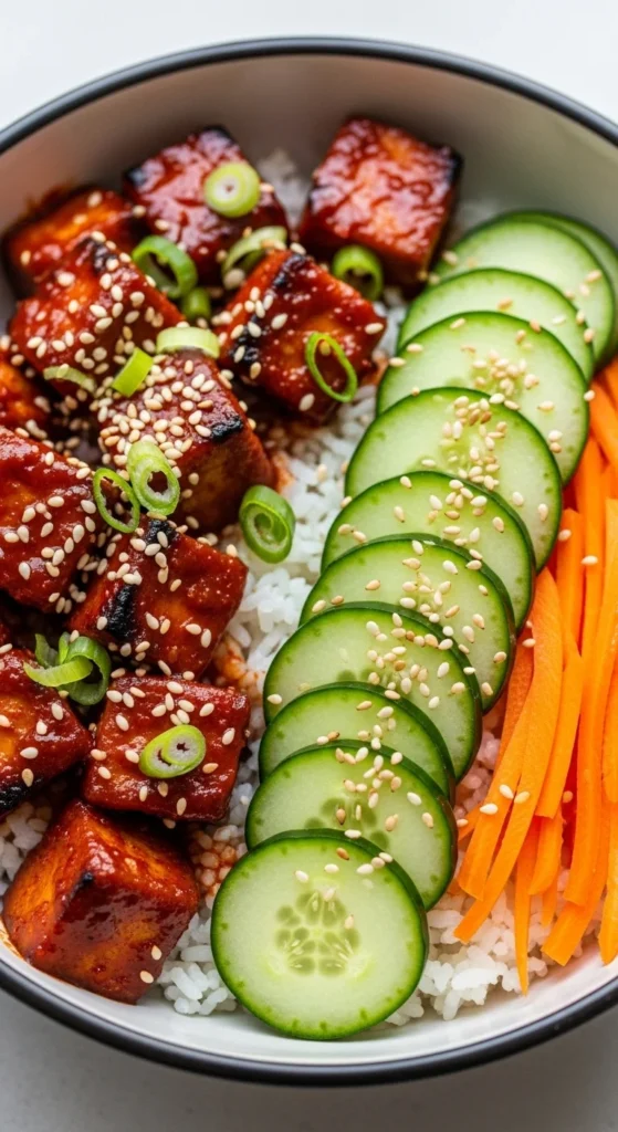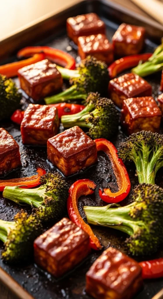 Tofu roasts into golden bites that soak up BBQ sauce like a sponge.