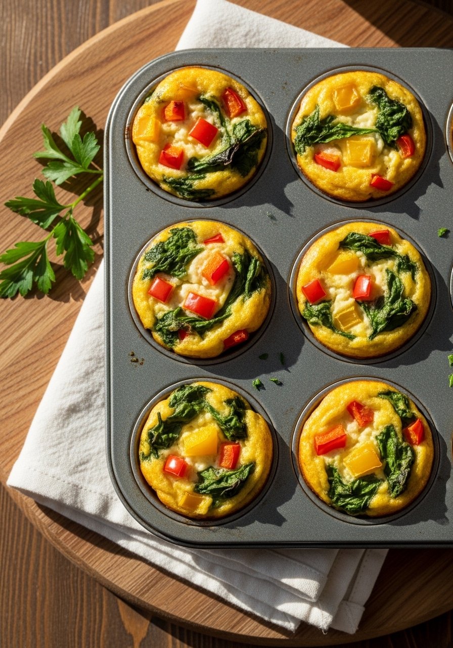 These Veggie Egg Muffins are portable, protein-packed, and keep you full through busy mornings. They have a fluffy texture, crisp edges, and bright specks of red pepper and herbs. Perfect for meal prep, they’re great for anyone who wants an easy breakfast or snack that fits many Weight Loss Recipes plans. The scent of baked eggs and roasted veggies is irresistible.