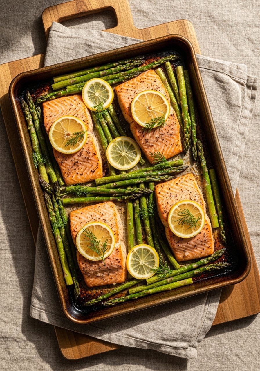 This sheet-pan salmon is bright, herby, and fast to make—ideal for busy weeknights when you want healthy comfort without fuss. The salmon stays moist while the asparagus gets crisp-tender, offering a mix of buttery fish and bright citrus notes. Fans of simple one-pan dinners and Weight Loss Recipes that prioritize protein will love this.