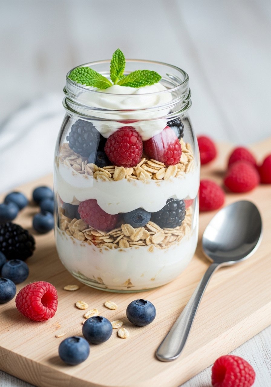 This parfait is a creamy, crunchy breakfast or snack that satisfies sweet cravings while delivering protein and fiber. It’s one of the Weight Loss Recipes that proves desserts can be healthy—tangy yogurt contrasts with sweet berries and toasted oats for a lively texture.
