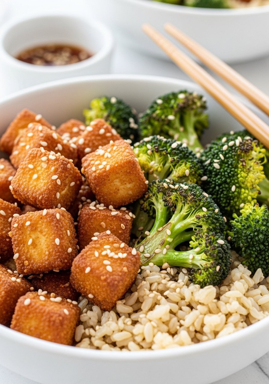 9. Air Fryer Tofu & Broccoli Bowl (Plant-Based, Protein-Rich)